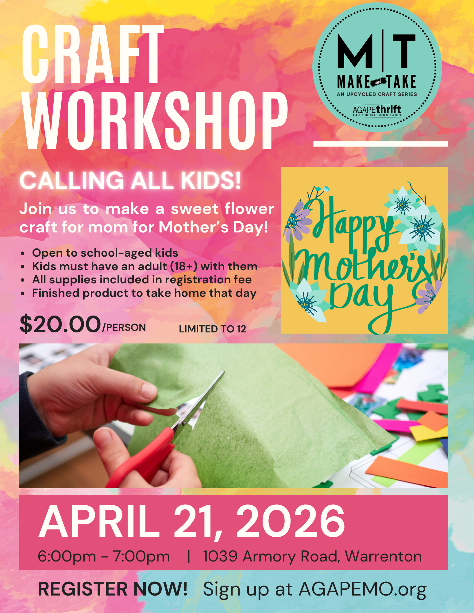 Make & Take Mother's Day Craft Class Tuesday, April 21, 2026 6:00 PM 7:00 PM Google Calendar ICS Register