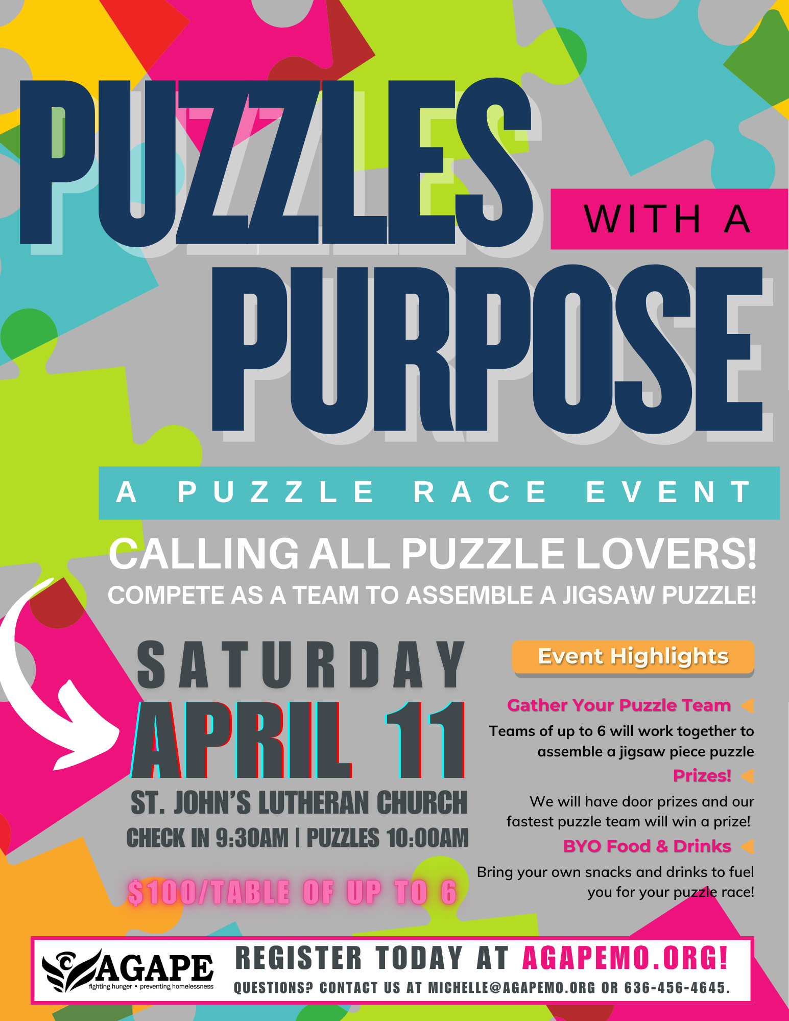 Back to All Events Puzzles with a Purpose Saturday, April 11, 2026 9:30 AM 12:00 PM Google Calendar ICS Register Now